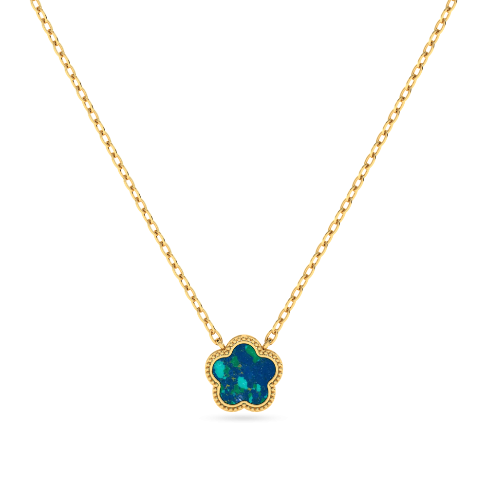 ملاحظات المصممإذا كانت طفلتكِ من محبين الألوان، فقدمي إليها هذه السلسلة الرقيقة من مس أل. تأتي السلسلة مصنوعة من ذهب أصفر عيار 18 قيراط وتحتوي على دلاية شكل وردة مرصعة بحجر أخضر مزرق. هذه السلسلة مثالية للاختيار اليومي.المعدن: ذهب أصفر 18 قيراطالحجر: أحجار ملونه,شكل تجريدى طول السلسلة: 32 سم